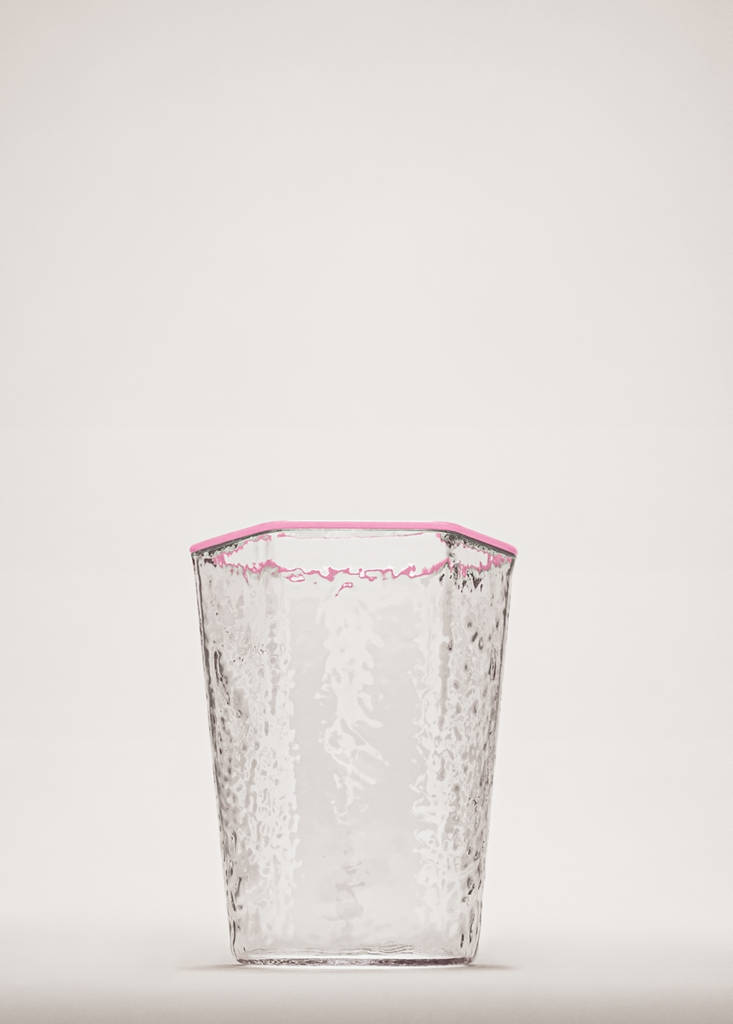 BOROSILICATOHammered borosilicate glass with coloured edgeCurrent price [€ 8.99 ]€ 8.99Select a colourPinkSelect your sizeOne sizeAddAdd to your wishlistSee lookFree delivery to store100% borosilicate glass. Size: 7.5x6.8x9.5 cm. Hammered effect glass. Colour detail on the edge. Available in more coloursDetails, composition and careStore availability