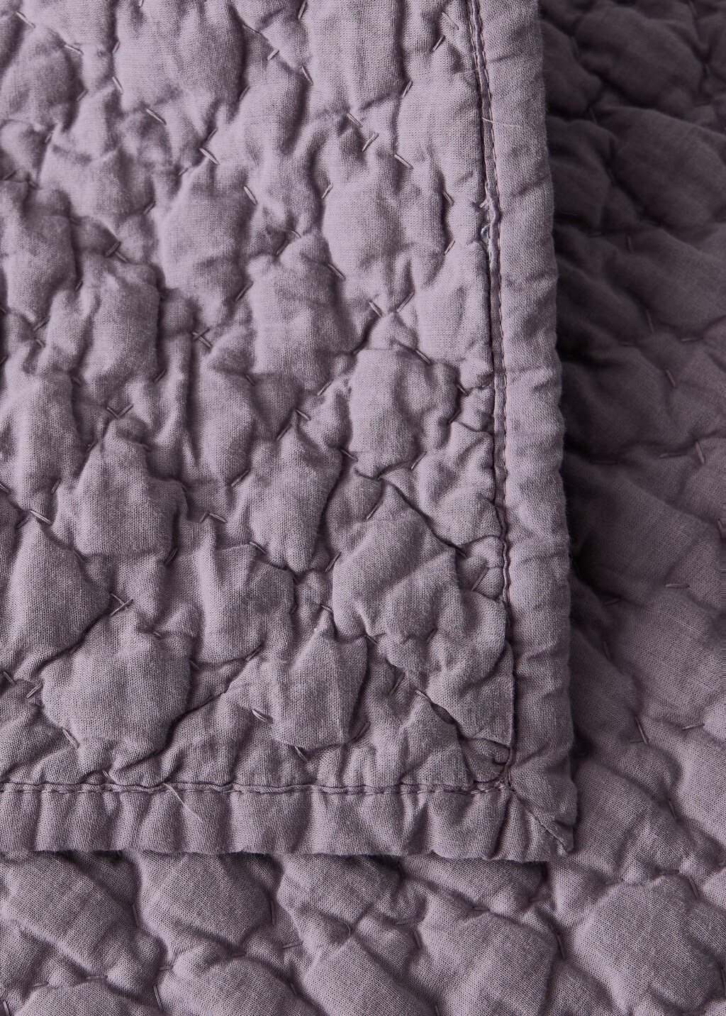 Dimensions: 230x250 cm. 100% Cotton. The hand stitching features a geometric pattern design, adding texture and a unique finish. Soft and comfortable texture to the touch.