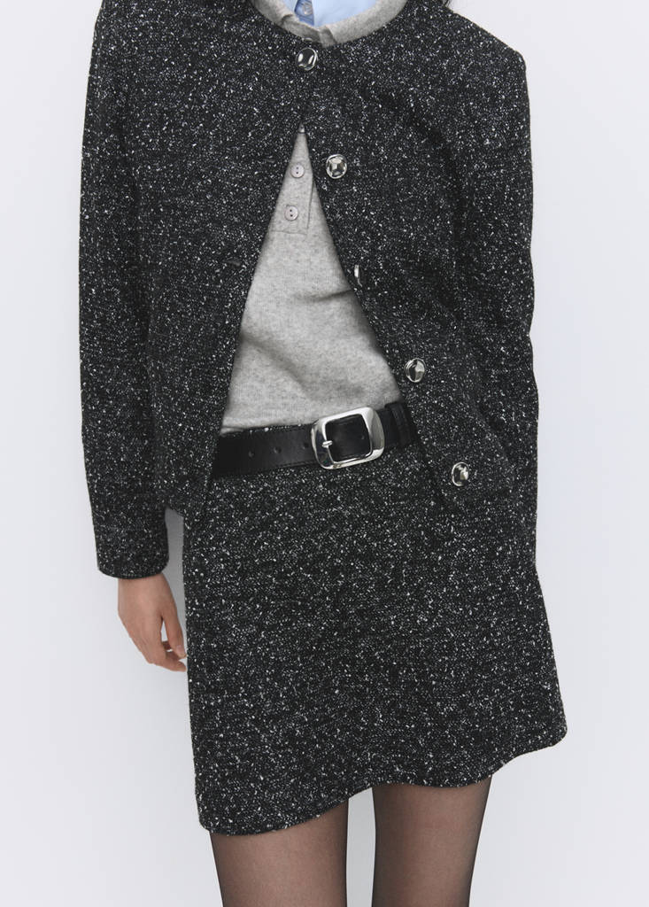Speckled knit fabric. Short design. Low Waist Rise. Side zip closure. Total look. Inner lining. Online Exclusive. This garment is part of our party and event collection, designed to elevate your looks for special occasions.