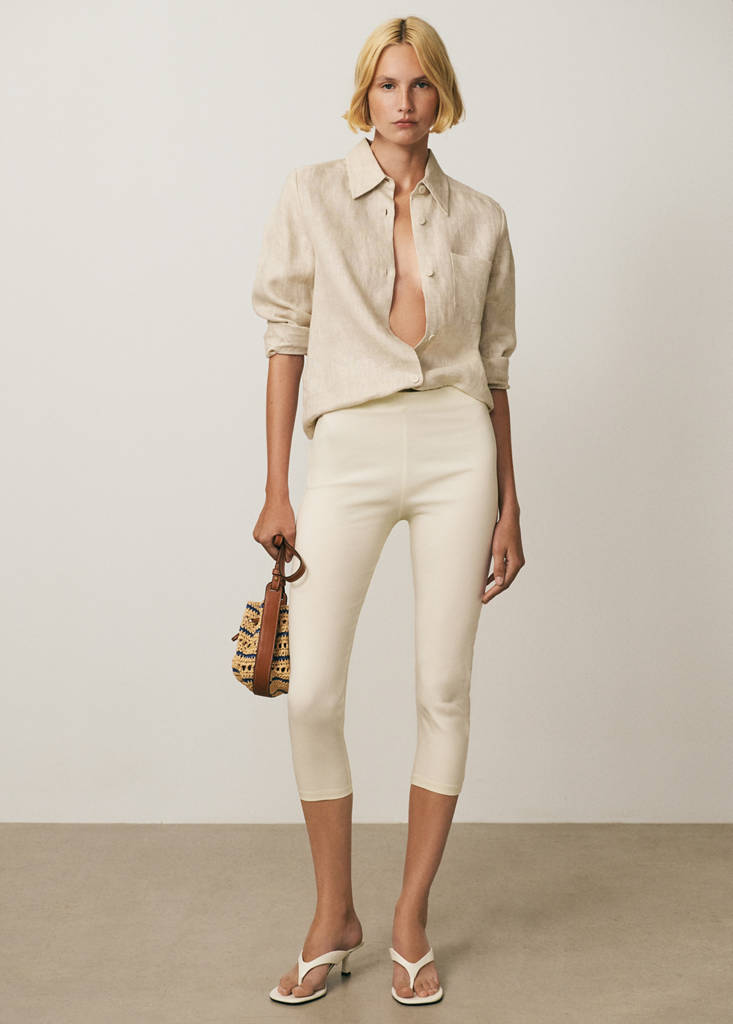 Small size. Natural fibre fabric. Combined design. Long strap. Knot closure.