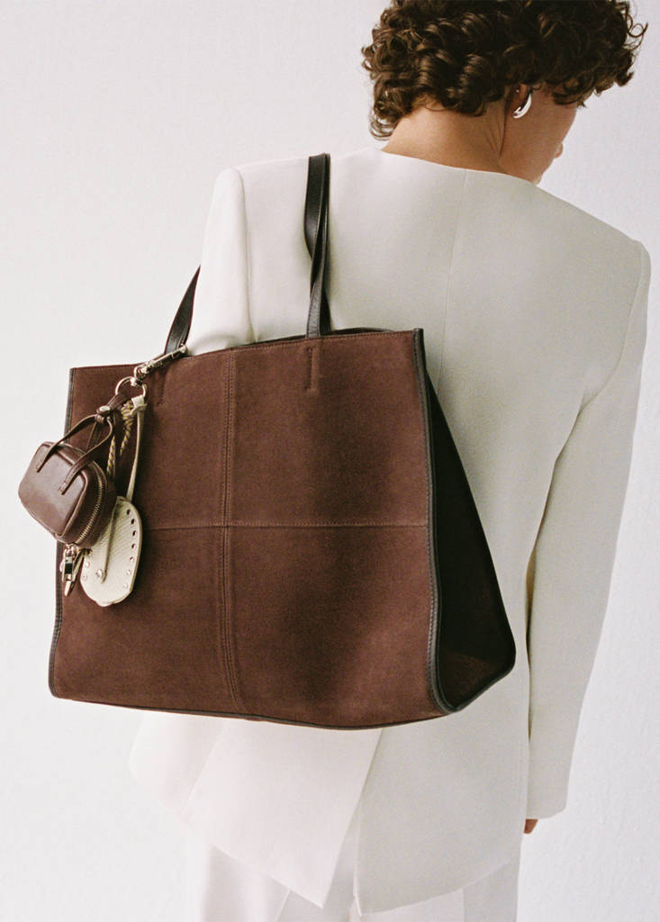 Suede leather shopper bag