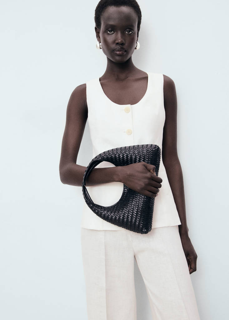 100% linen fabric. Long design. Straight design. Suit style. Low neckline. Buckle detail on the back. Front closure with buttons. 100% cotton lining.