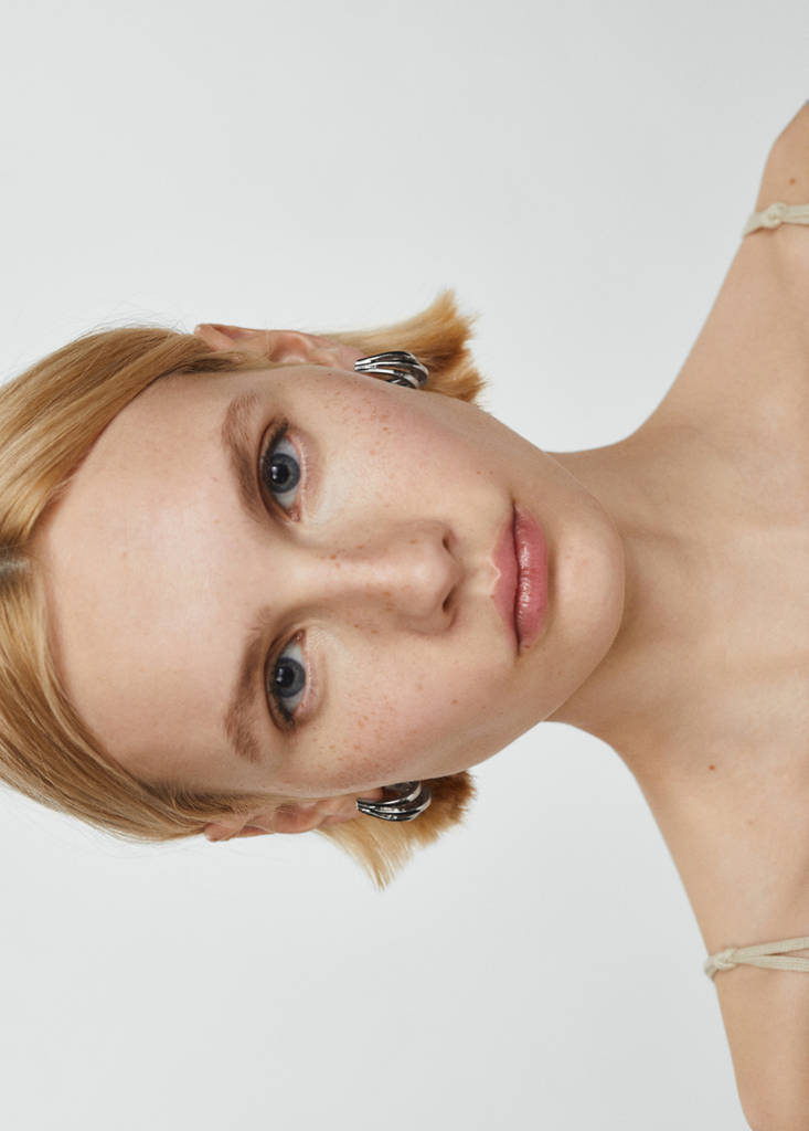 Three hoop earringsCurrent price [LYD 109.00 ]LYD 109.00Select a colourSilverSelect your sizeOne sizeAdd to WishlistSee lookFree delivery to storeHoop design. Metal snap closureDetails, composition and careStore availability