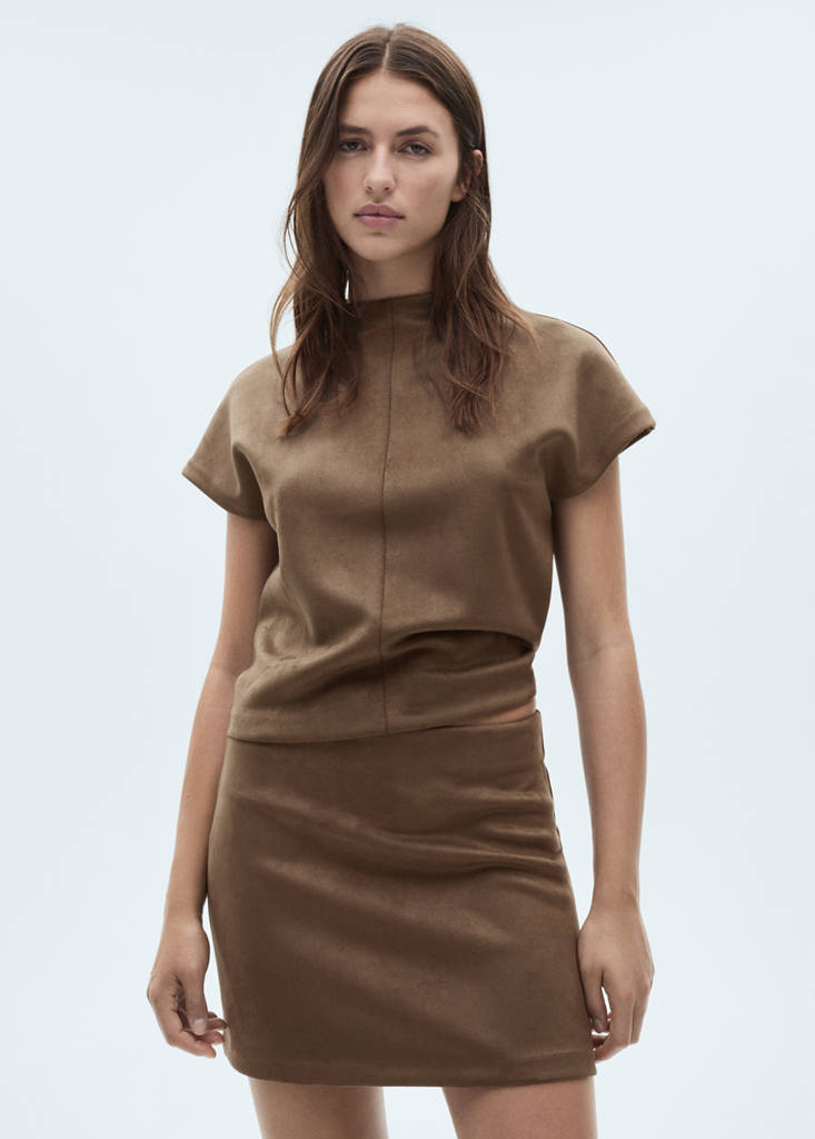 Faux-suede mini skirtCurrent price [LYD 289.00 ]LYD 289.00Select a colourLight/Pastel BrownLarge garment - Choose one size down from the usualSelect your sizeXSSMLXLAdd to WishlistSee lookFree delivery to storeSee availability in storeDescriptionFaux suede. Straight design. Short design. Mid-rise. No Fastening. Total look. Elasticated waistband. Faux leather.See detailsShare