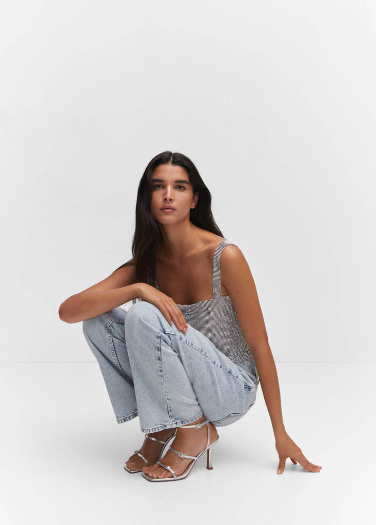 Effet métallisé, bout carré, talon entonnoir, bride de cheville, fermeture à boucle, boucles décoratives, talon de 8,5 cm, collection fêtes et cérémonies.