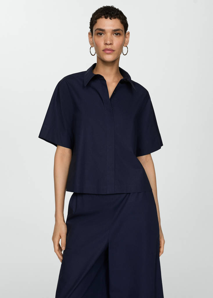 Coupe droite. Col chemise. Manche courte. Tissu 100% coton. Fermeture avant avec boutons