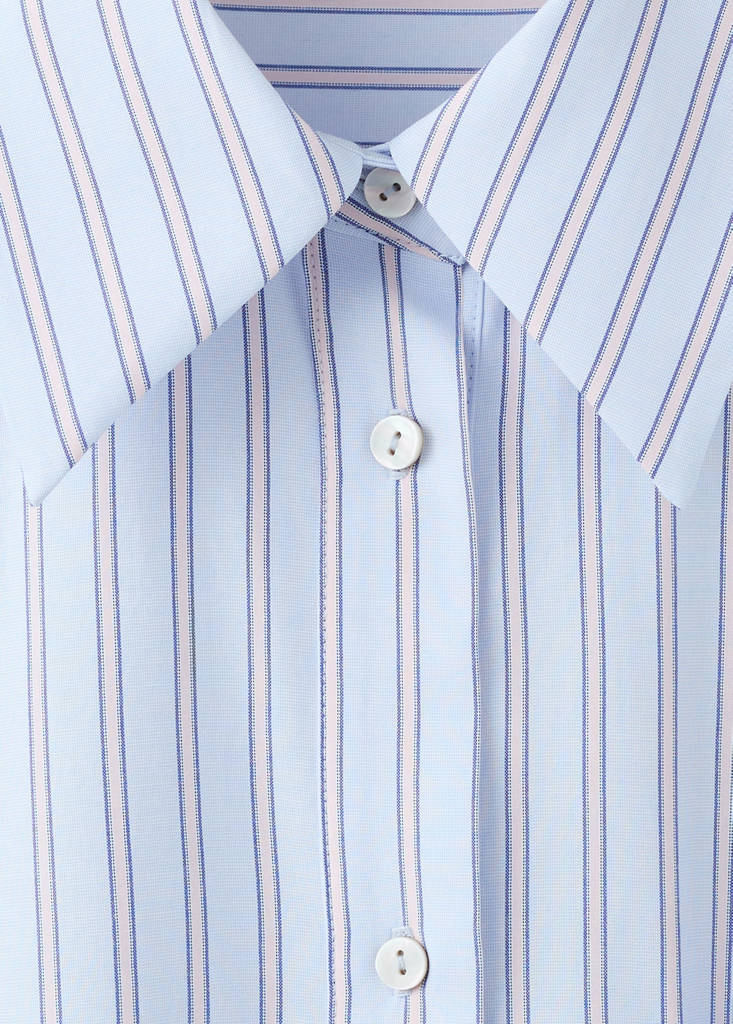 Tissu fluide. Design Droit. Motif rayé. Col chemise. Manches longues et poignets boutonnés. Poche avant. Fermeture avant avec boutons. Détail en strass