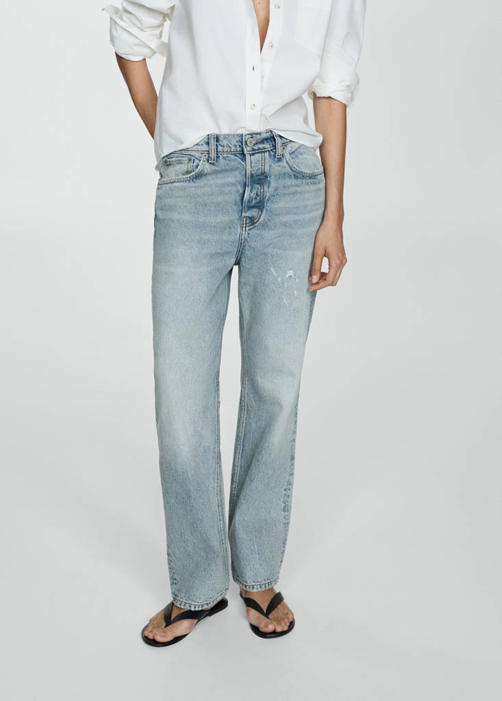 Tissu en coton style denim cowboy. Coupe jupe-culotte. Design crop. Taille mi-haute. Passants de ceinture. Cinq poches. Fermeture éclair et bouton. Longueur intérieure 74 cm. Design wideleg. Bas effiloché.