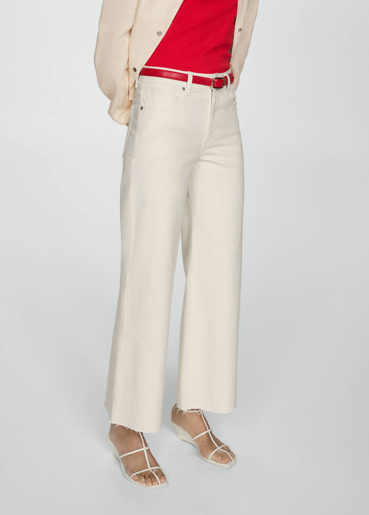 Tissu en coton style denim cowboy. Coupe jupe-culotte. Design crop. Taille mi-haute. Passants de ceinture. Cinq poches. Fermeture éclair et bouton. Longueur intérieure 74 cm. Longueur intérieure 72 cm.