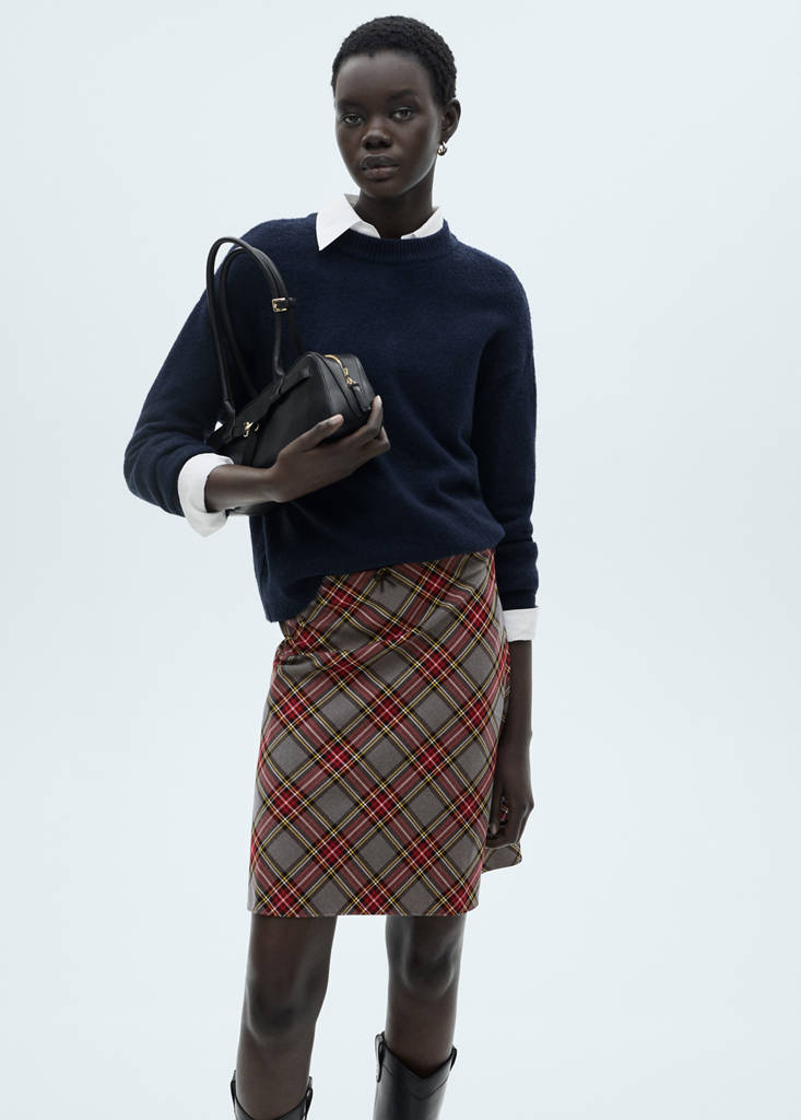 Tissu fluide. Imprimé carreaux. Crayon. Coupe midi. Fermeture Éclair invisible sur le côté. Finitions en dentelle. Nœud décoratif