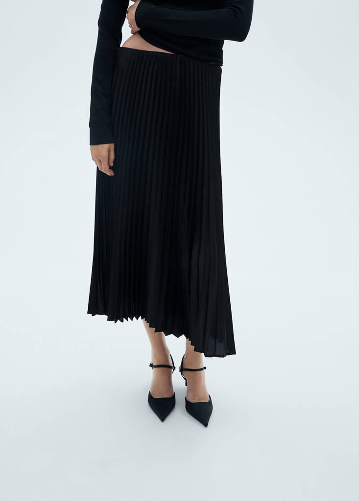 Tissu fluide. Taille haute. Design évasé. Design long. Design plissé. Taille élastiquée. Doublure. Collection fêtes, cérémonie et communion. Tissu satiné. Coupe midi. Sans fermeture. Bande élastique. Sans doublure intérieure. Tissu léger. Tissu plissé. Taille mi-haute. Looks de bureau. La couleur violette est une exclusivité en ligne