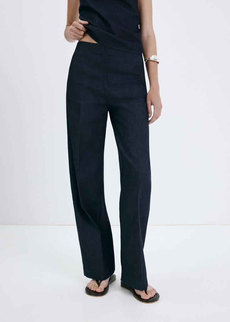 Tissu mélange de coton et lin. Tissu en coton style denim. Coupe droite. Design long. Structure maille Maille fine. Fermeture Éclair sur le côté. Disponible en grande taille