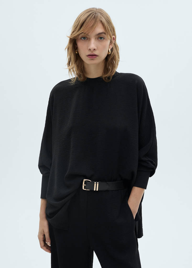 Tissu en maille. Design oversize. Col rond. Manche longue. Poignets élastiques. Sans fermeture. Total look