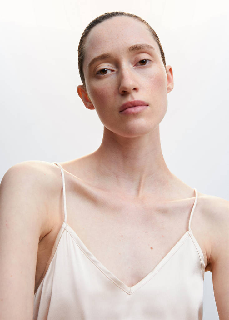 Tissu fluide. Tissu satiné. Col en V. Bretelles fines