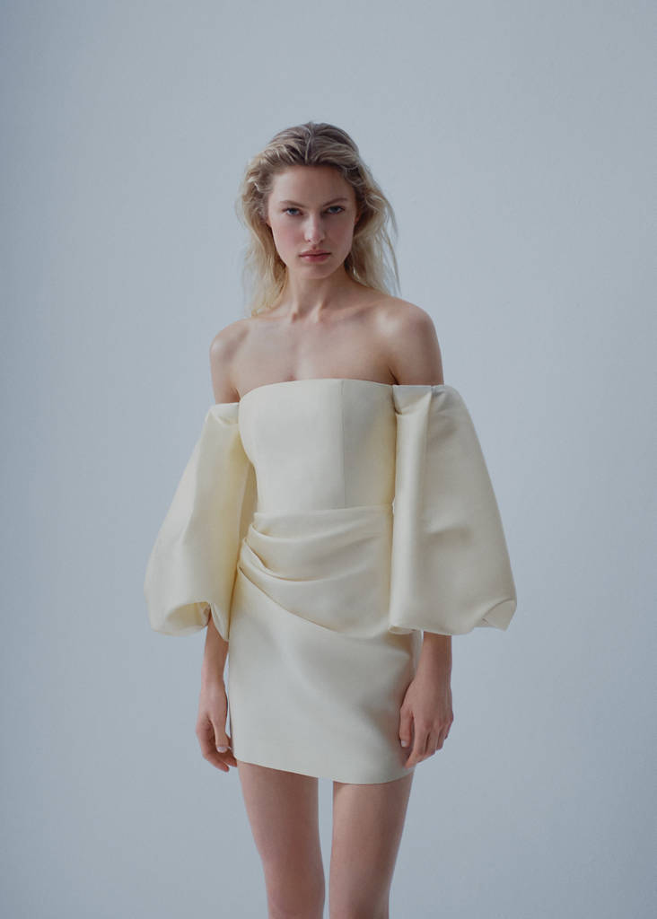 Confectionnée en satin de grande qualité, avec un haut bustier et des manches bouffantes, cette robe incarne la sophistication et l’élégance à l’état pur. Ce vêtement a été fabriqué au Portugal avec des tissus italiens qui lui confèrent une qualité supérieure. , tissu de satin, tissu satiné, coupe cintrée, coupe courte, bustier, manches courtes bouffantes, fermeture Éclair à l'arrière, fabriqué au Portugal, short denim fleurs, collection fêtes et cérémonies.