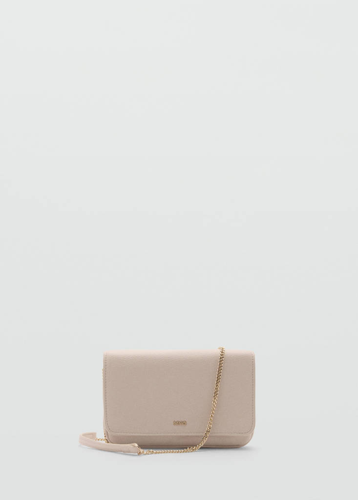 Format petit. Coupe croisée. Chaîne fine métallique. Double compartiment intérieur. Fermeture à rabat avec bouton magnétique. Logo en relief
