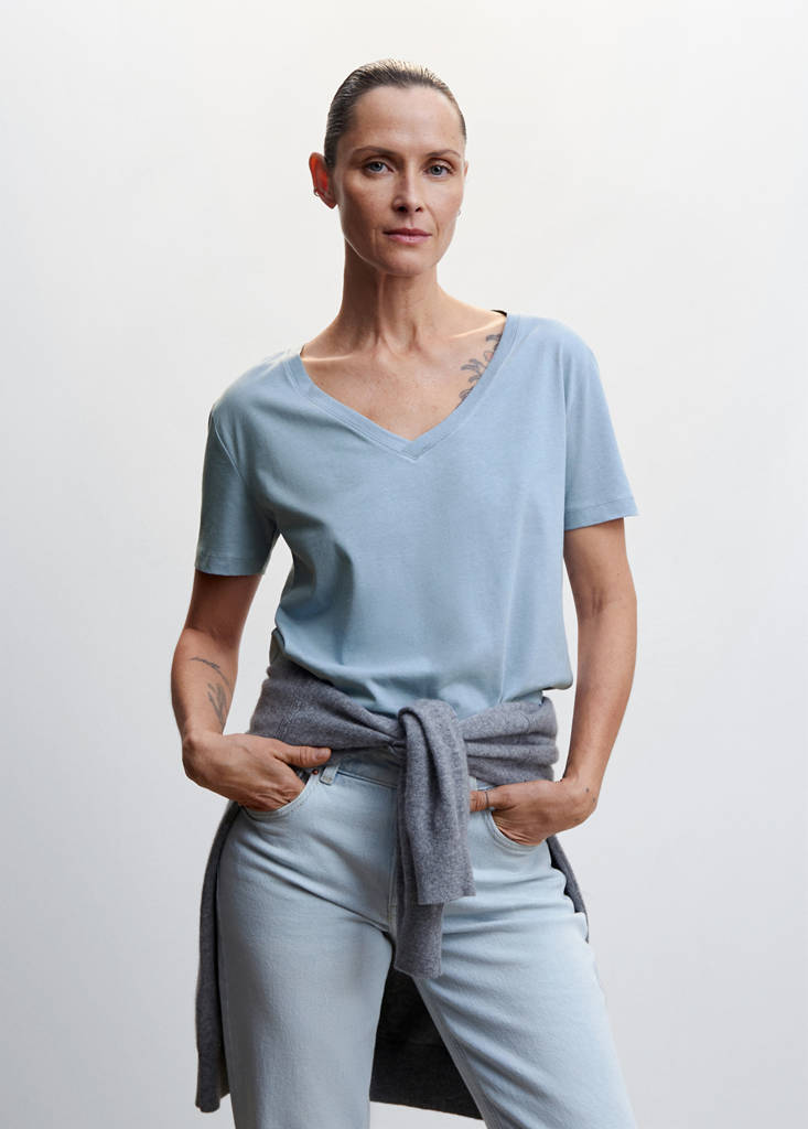 T-shirt basique en cotonPrix actuel [119,00 MAD ]119,00 MADChoisissez une couleurBleu cielChoisissez votre tailleXXSXSSMLXLXXL1XL2XL3XL4XLMesuresAjouter aux FavorisVoir le lookLivraison gratuite en boutique100 % coton. Droit. Col en V. Manches courtes. Disponible PlusDétails, composition et entretienDisponibilité en boutique