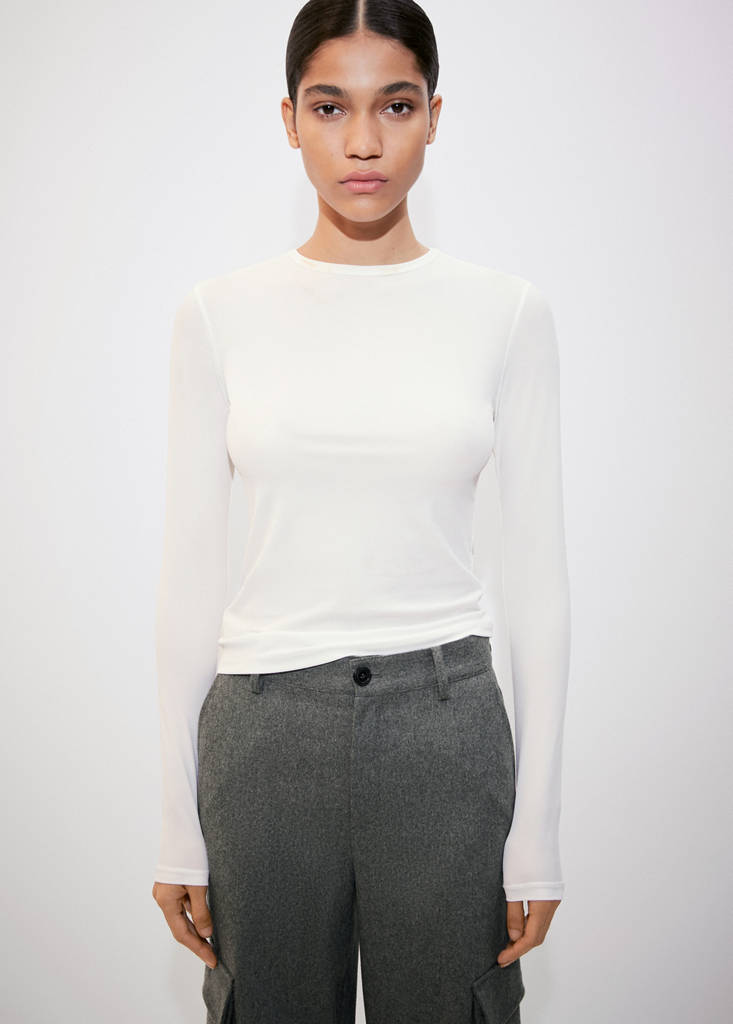 Collection Beyond, coupe droite, col rond, manches longues, le coton et le polyester recyclés de ce vêtement sont obtenus à partir de déchets textiles pré- et post-consommation qui sont transformés en nouveaux fils et tissus..