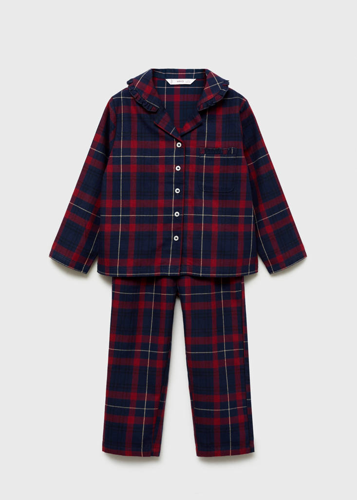 Collection Noël. Pack de t-shirt et pantalon de pyjama. Coupe droite. Motif à carreaux. Revers. Poche plaquée. Manche longue. Fermeture à boutons. Design long. Taille élastiquée. Fermeture à nœud