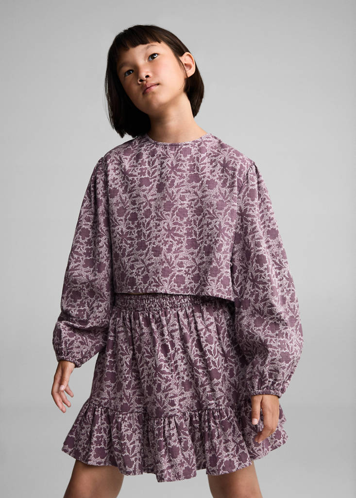 Collection Rentrée des classes. 100% coton. Imprimé floral. Coupe courte. Taille élastiquée. Bord à volants. Sans fermeture