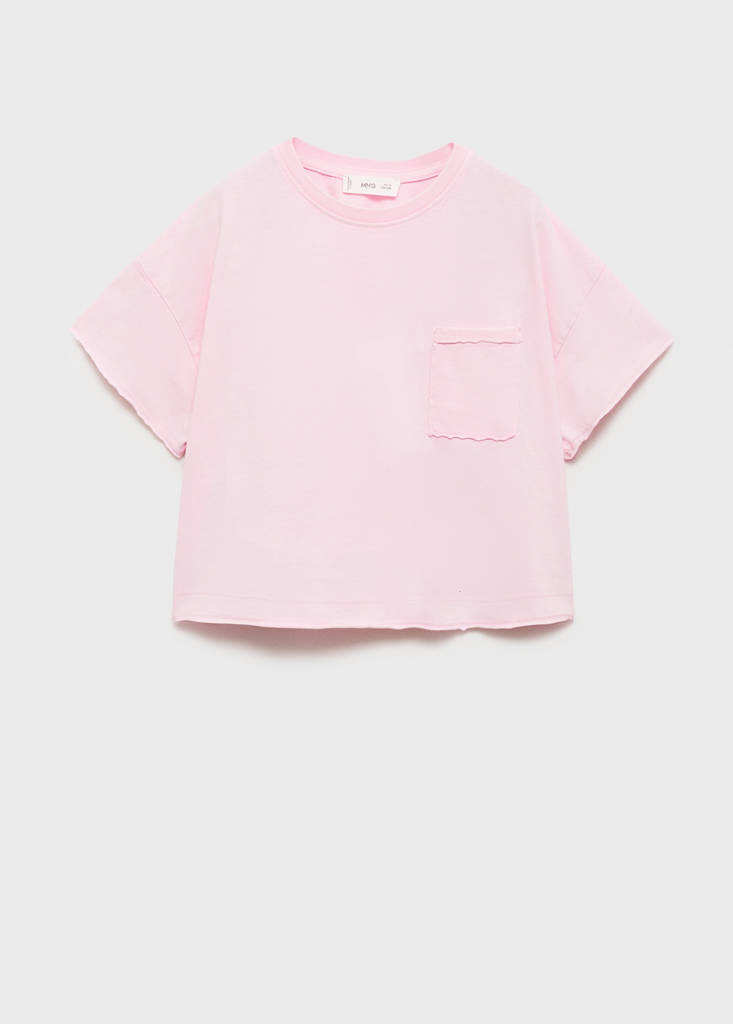 Tissu 100% coton. Design crop. Col rond. Manche courte raglan. Sans coutures. Poche plaquée.