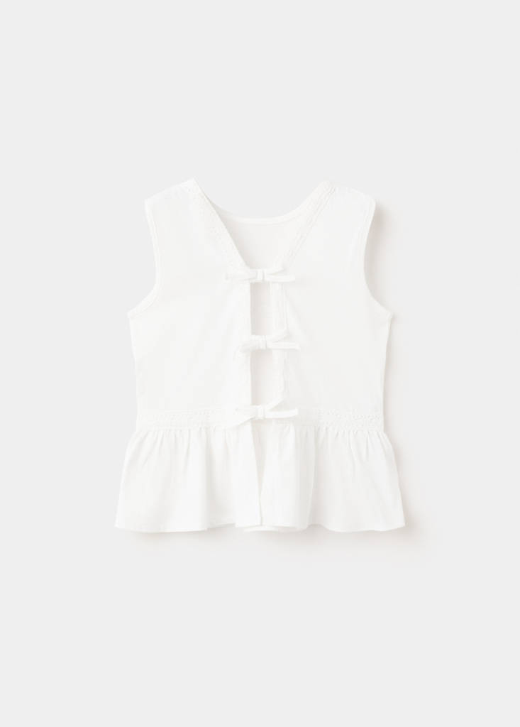 New NowHaut à nœuds avec détails broderiePrix actuel [199,00 MAD ]199,00 MADChoisissez une couleurBlanc casséChoisissez votre taille5-6 ans (116cm)7-8 ans (128cm)9-10 ans (140cm)11-12 ans (152cm)13-14 ans (164cm)MesuresAjouter aux FavorisVoir le lookLivraison gratuite en boutiqueTissu 100 % coton. Coupe droite. Col en V. Sans manches. Ourlet à volants. Détail fermeture à nœuds. Détails brodésDétails, composition et entretienDisponibilité en boutique