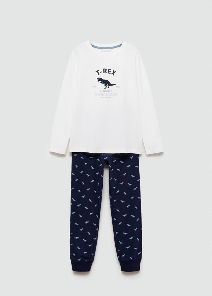 Pack de t-shirt et pantalon de pyjama. 100 % coton. Coupe droite. Imprimé dinosaures. Col rond. Manche longue. Taille élastiquée. Style jogger