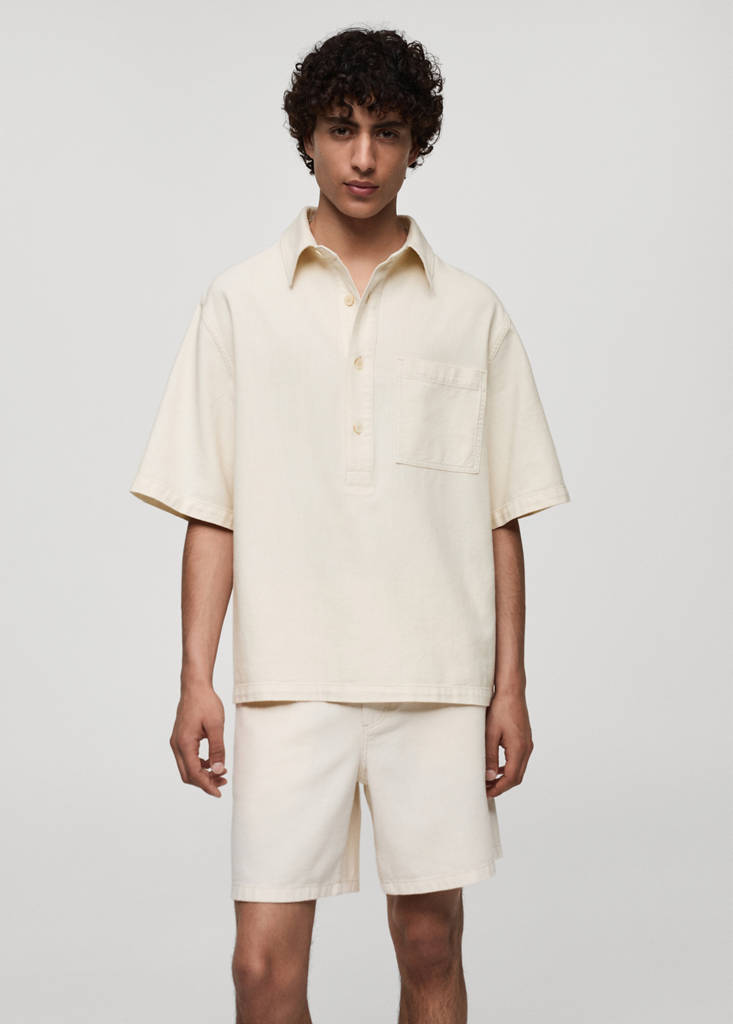 Ensemble disponible en total look. Relaxed-fit. Tissu en coton. Col chemise. Manche courte. Fermeture à boutons sur le devant. Poche plaquée sur la poitrine. Ourlet droit