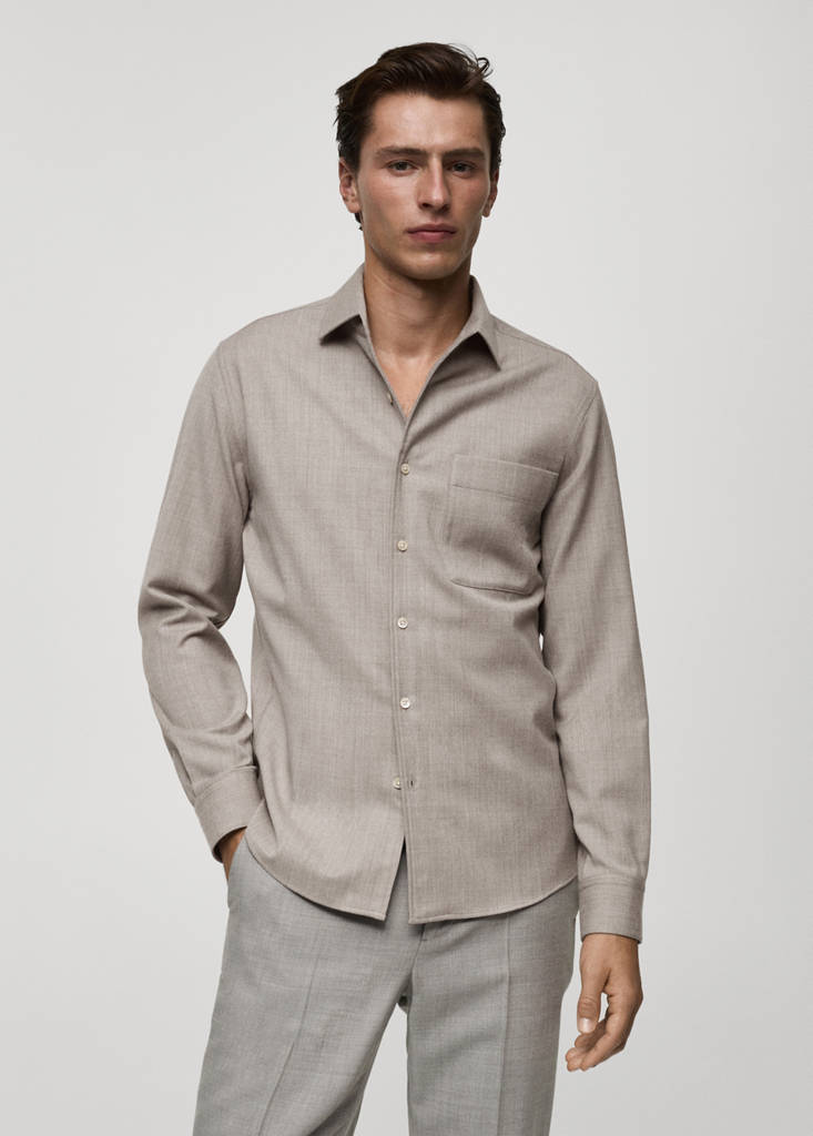 Collection Selection. Tissu 100 % laine. Coupe regular. Col réalisé en une seule pièce pour masquer les coutures de jonction avec le corps du vêtement. Poche plaquée sur la poitrine. Manches longues et poignets boutonnés. Ourlet arrondi. Fermeture avant avec boutons
