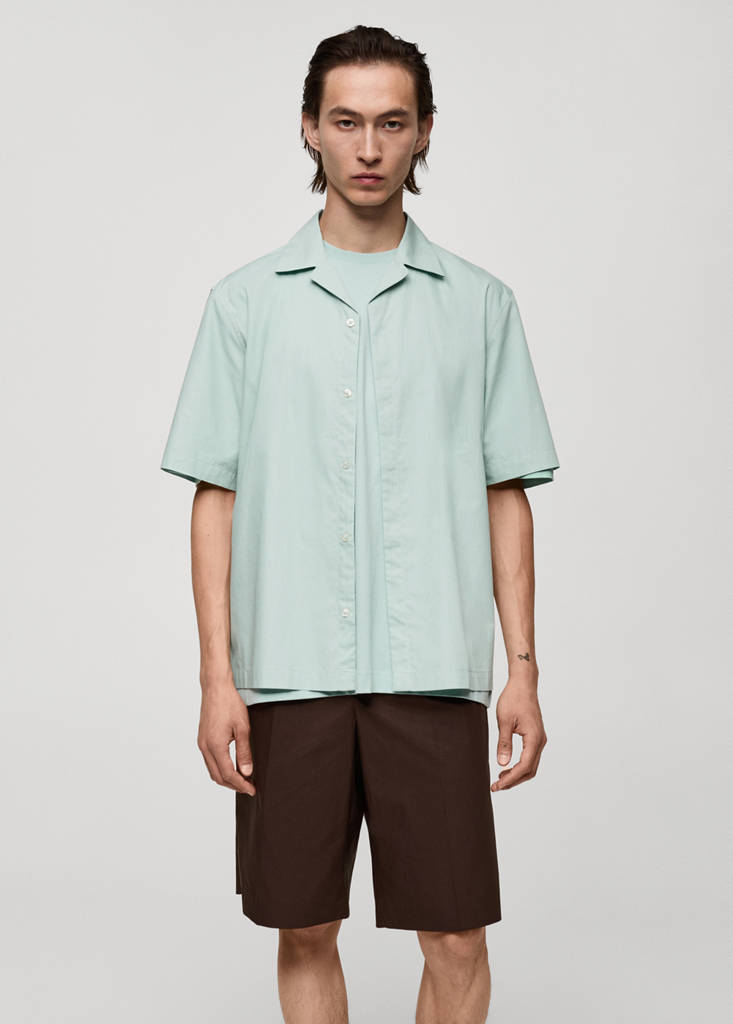 Col bowling. Fermeture à boutons sur le devant. Manche courte. Ourlet droit. Tissu 100% coton