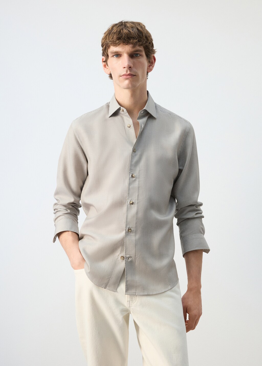 Tissu de Lyocell. Coupe regular. Longueur standard. Motif à rayures verticales. Col chemise. Manches longues et poignets boutonnés. Fermeture à boutons. Ourlet arrondi.
