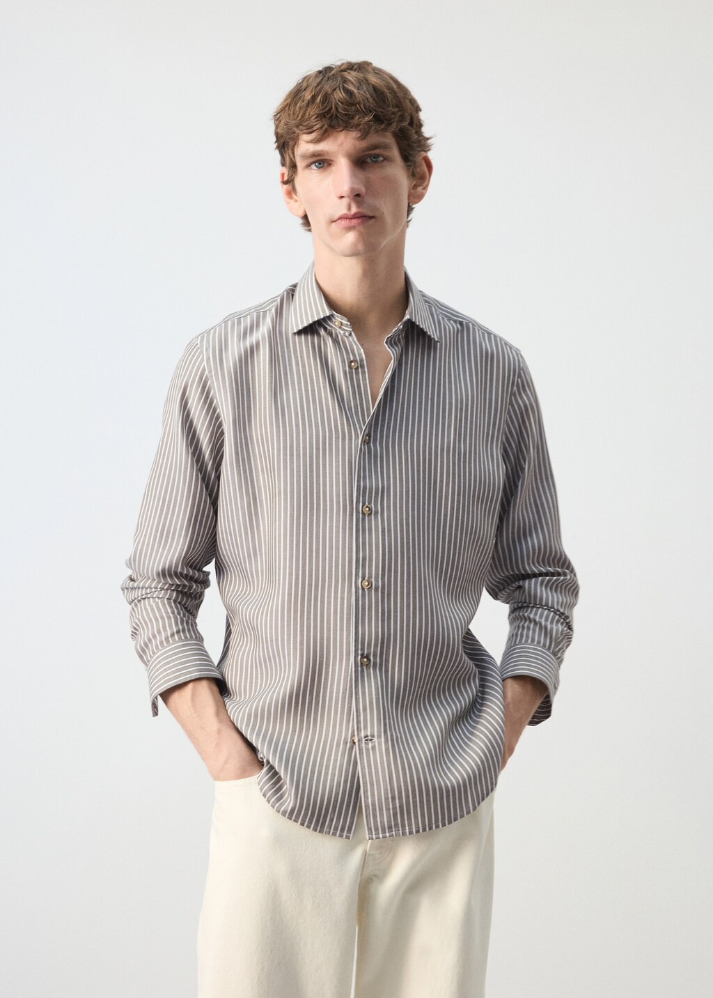 Tissu de Lyocell. Coupe regular. Longueur standard. Motif à rayures verticales. Col chemise. Manches longues et poignets boutonnés. Fermeture à boutons. Ourlet arrondi.