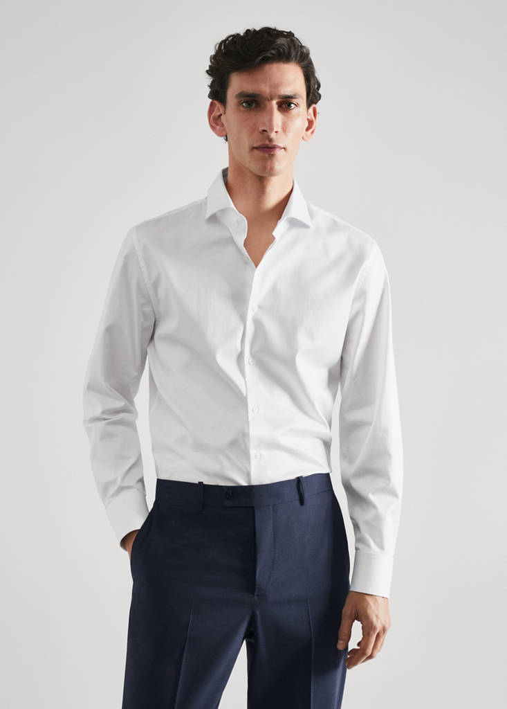Slim fit. Col regular. 100 % coton. Tissu twill. Repassage facile : tissu facile à repasser. Col cutaway. Manche longue. Poignet double avec bouton de manchette intégré. Fermeture à boutons