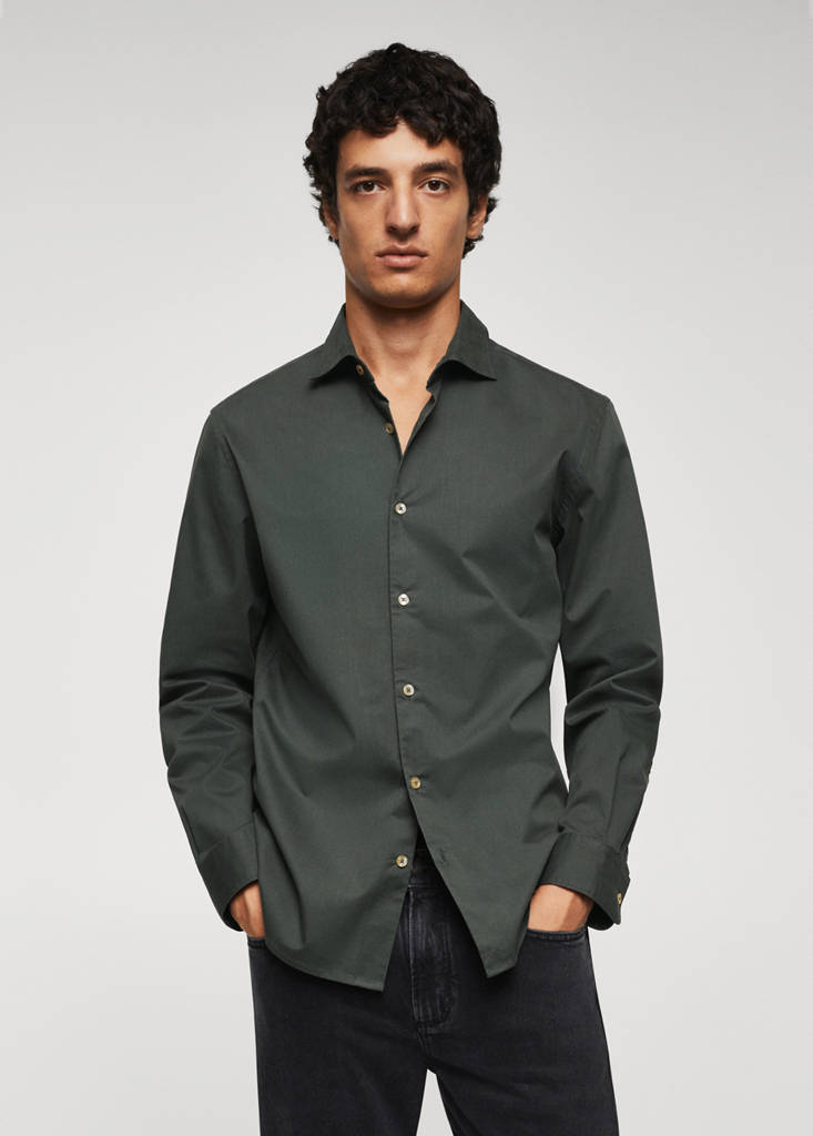 Chemise slim fit cotonPrix actuel [599,00 MAD ]599,00 MADChoisissez une couleurKakiChoisissez votre tailleSMLXLMesuresAjouter aux FavorisVoir le lookLivraison gratuite en boutiqueSlim-fit. Tissu de coton mélangé. Col classique. Manches longues avec poignets boutonnés. Le mannequin mesure 185 cm et porte une taille MDétails, composition et entretienDisponibilité en boutique