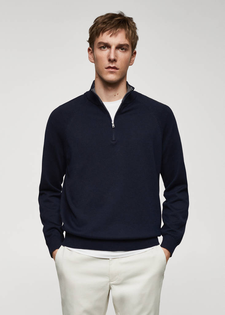 Pull-over coton col zippé