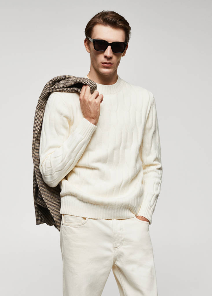 Tissu en polyester et laine. Slim fit. Motif tressé. Col rond. Manches longues avec poignets élastiques. Ourlet droit. Bords côtelés au niveau du col, des manches et sur le bas