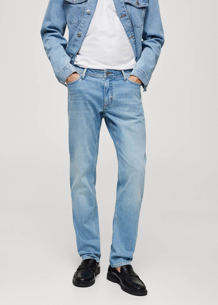 Slim fit. Tissu en coton style denim cowboy. Taille mi-haute. Passants de ceinture. Fermeture éclair et bouton. Deux poches avant. Poche gousset. Deux poches plaquées à l'arrière. Le pantalon mesure 112 cm pour une taille de base 42 : 7 cm de plus que d'habitude