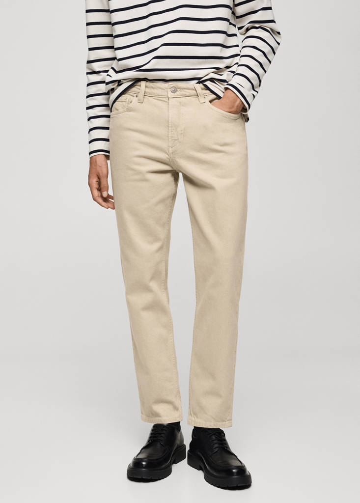 Tapered-fit : coupe large en haut qui se resserre depuis le genou jusqu’à la cheville. Tissu en coton. Style jean. Taille mi-haute. Design crop. Passants de ceinture. Fermeture éclair et bouton. Deux poches latérales. Deux poches plaquées à l'arrière.