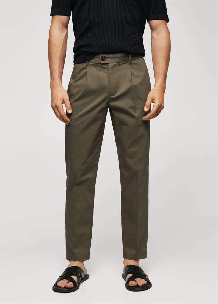Slim-fit. Tissu de coton mélangé. Pinces. Passants pour la ceinture. Deux poches latérales. Deux poches passepoilées boutonnées à l'arrière. Fermeture Éclair avec bouton. Le mannequin mesure 183 cm et porte une taille 42. Collection Essentiels. Campagne Antoine Griezmann