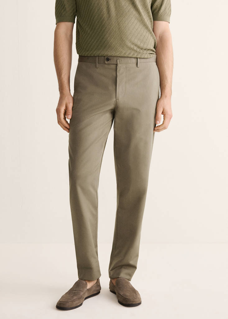 Slim fit. Deux poches latérales. Passants pour ceinture. Fermeture avant à double boutonnage et fermeture éclair. Deux poches passepoilées avec bouton à l'arrière