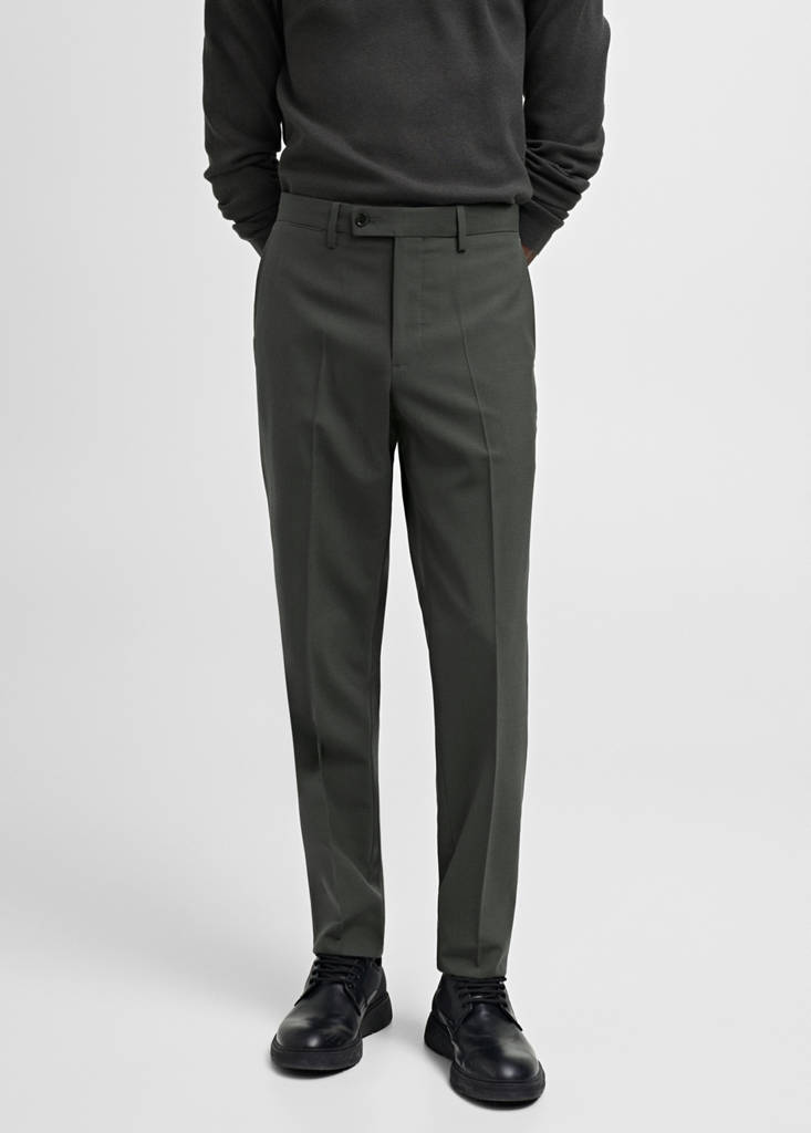 Collection Performance. Quadri-extensible : élasticité dans toutes les directions. Plus de confort dans votre quotidien grâce à sa souplesse. Lavable en machine. Slim fit. Tissu de laine mélangé. Taille mi-haute. Passants de ceinture. Fermeture avant à double boutonnage et fermeture éclair. Thermorégulateur : Ce tissu offre une respirabilité optimale pour maintenir votre température stable. Infroissable : tissu qui ne se froisse pas. Détail de pli marqué à l'avant et à l'arrière