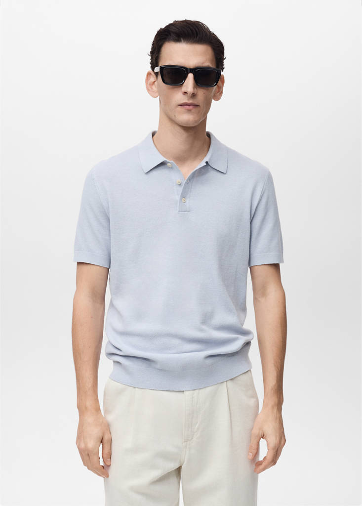 Slim fit. Tissu en mélange de coton. Maille fine avec microstructure. Col polo avec fermeture à boutons. Manche courte. Bords côtelés au niveau des manches et sur le bas. Ourlet droit. Produit en promotion