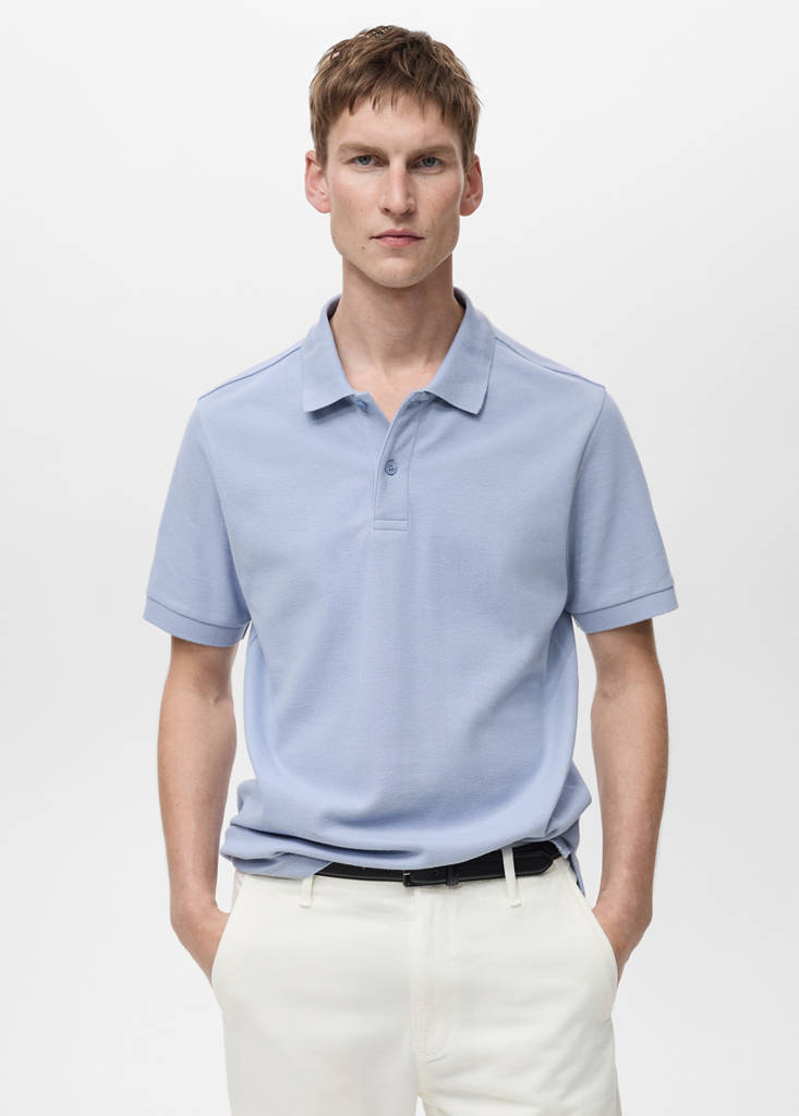 Coupe regular. Tissu 100% coton. Tissu piqué. Col polo. Fermeture à boutons. Manches courtes avec poignets côtelés. Bas droit avec fentes latérales