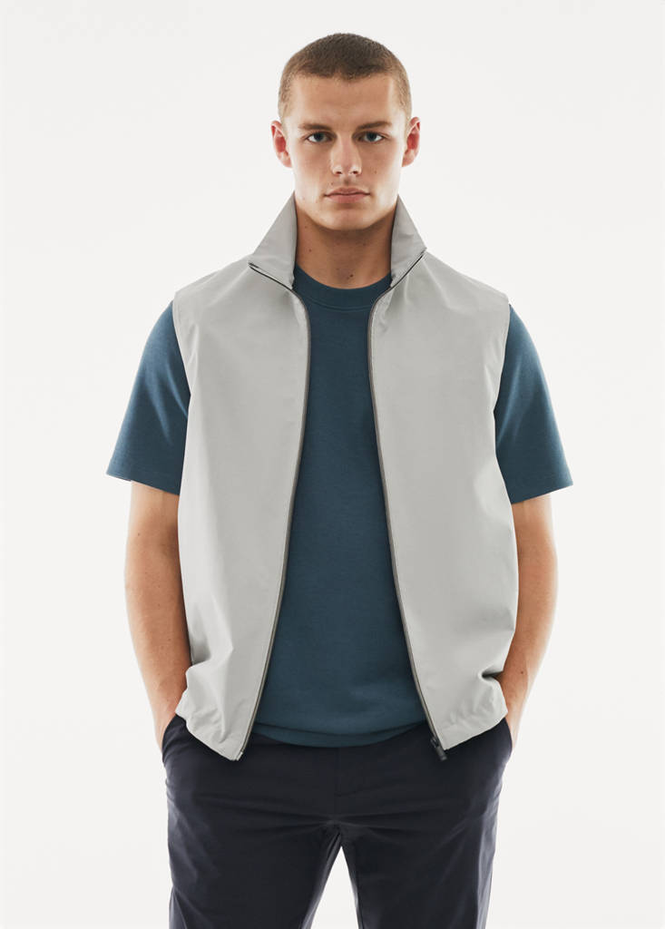 Collection Performance. Coupe droite. Coupe regular. Tissu léger. Tissu imperméable. Entretien facile : la finition du tissu facilite l'entretien et le repassage du vêtement. Col cheminée zippé. Fermeture Éclair à l’avant. Deux poches avant à fermeture Éclair invisible. Taille avec cordon intérieur ajustable. Ourlet droit. Sans manches. Doublure intérieure fine. Poche intérieure zippée. Hydrofuge : La finition résistante de ce vêtement protège contre les pluies légères, repoussant le contact avec l'eau et les gouttes de pluie. Windproof : Ce matériau résistant offre une protection contre le vent pour un plus grand confort lors des activités de plein air
