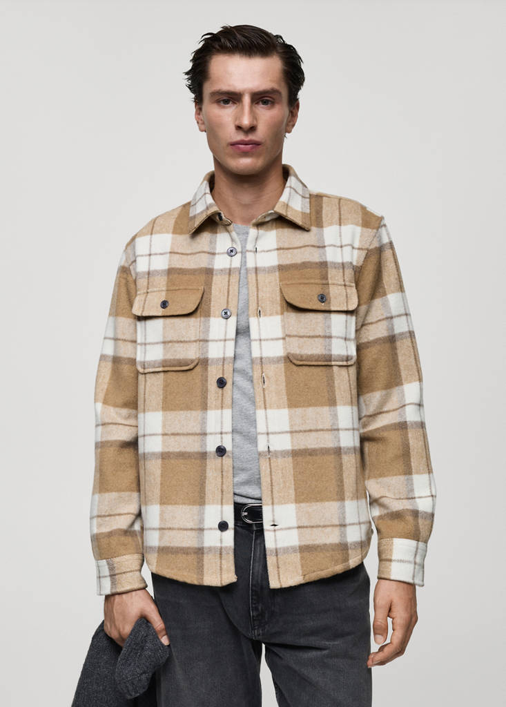 Tissu en flanelle. Motif à carreaux. Deux poches à rabat, plaquées et boutonnées à l’avant. Poignets boutonnés. Col chemise. Fermeture à boutons. Ourlet arrondi