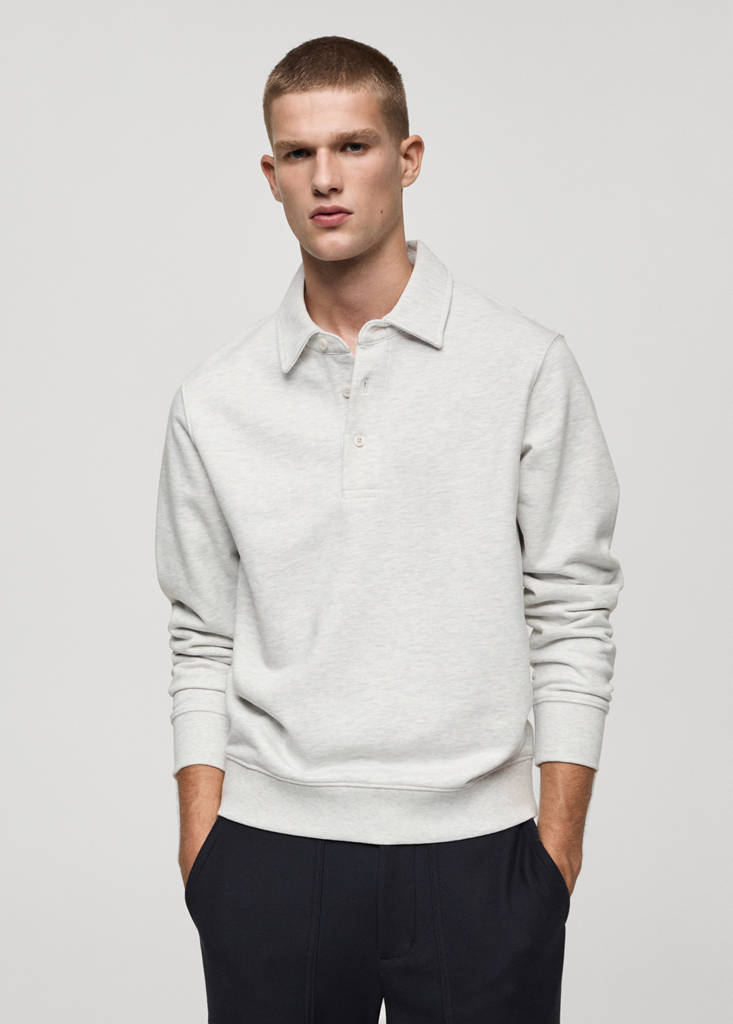 Relaxed-fit. Col polo avec fermeture à boutons. Manches longues avec poignets élastiques. Intérieur en coton gratté. Bas droit à bords côtelés. The sand model is an online exclusive. Tissu 100% coton