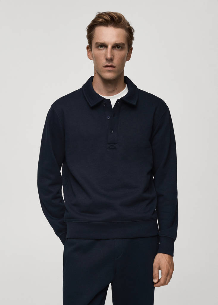 La couleur marron est exclusive en ligne. Coupe regular. Tissu en mélange de coton. Col polo avec fermeture à boutons. Intérieur en coton gratté. Poignets et bas côtelés contrastés