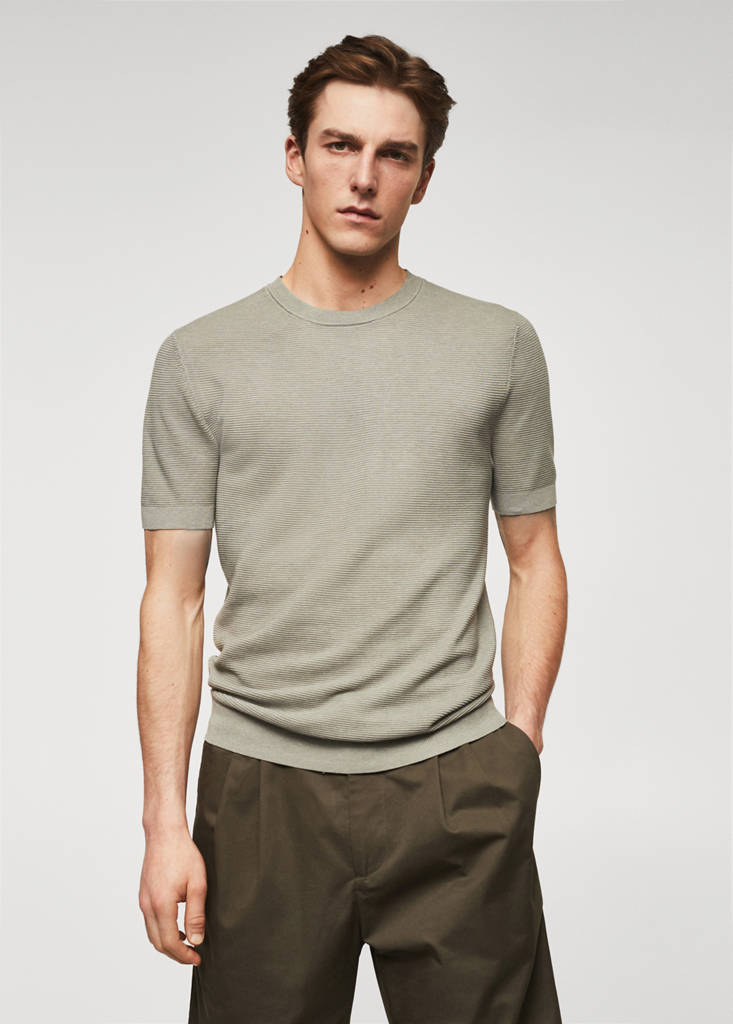 Slim-fit. Tissu en maille fine. Tissu structuré. Col rond. Manches courtes. Le mannequin mesure 187 cm et porte une taille M. Collection Essentiels. Campagne Antoine Griezmann