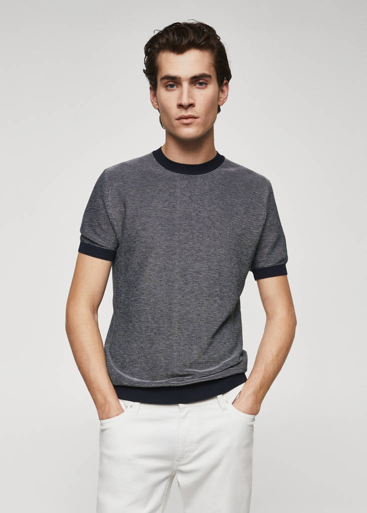 T-shirt maille texturéePrix actuel [399,00 MAD ]399,00 MADChoisissez une couleurBleu marineLe mannequin porte la taille M et mesure 188cm.Choisissez votre tailleSMLXLXXLMesuresAjouter aux FavorisVoir le lookLivraison gratuite en boutiqueRegular-fit. Tissu en maille fine. Tissu texturé à rayures. Col rond. Manches courtes. Bords côtelés élastiquesDétails, composition et entretienDisponibilité en boutique