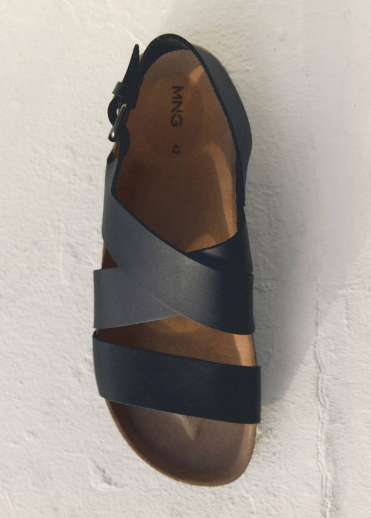 100 % cuir bovin. Design à lanière croisée. Boucle de serrage à l'arrière